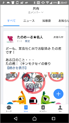 ・正式な社内通知 (メールなど) との使い分けで、柔らかいコミュニケーションが可能に