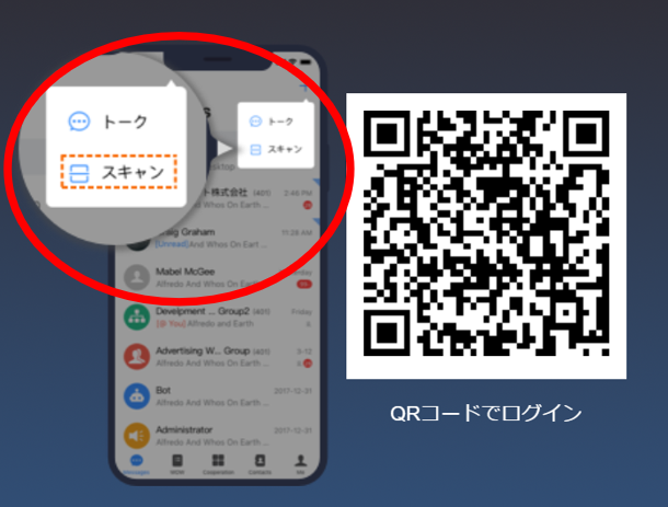 下記の表示に従い、スマホ版WowTalkからQRコードを読み込む