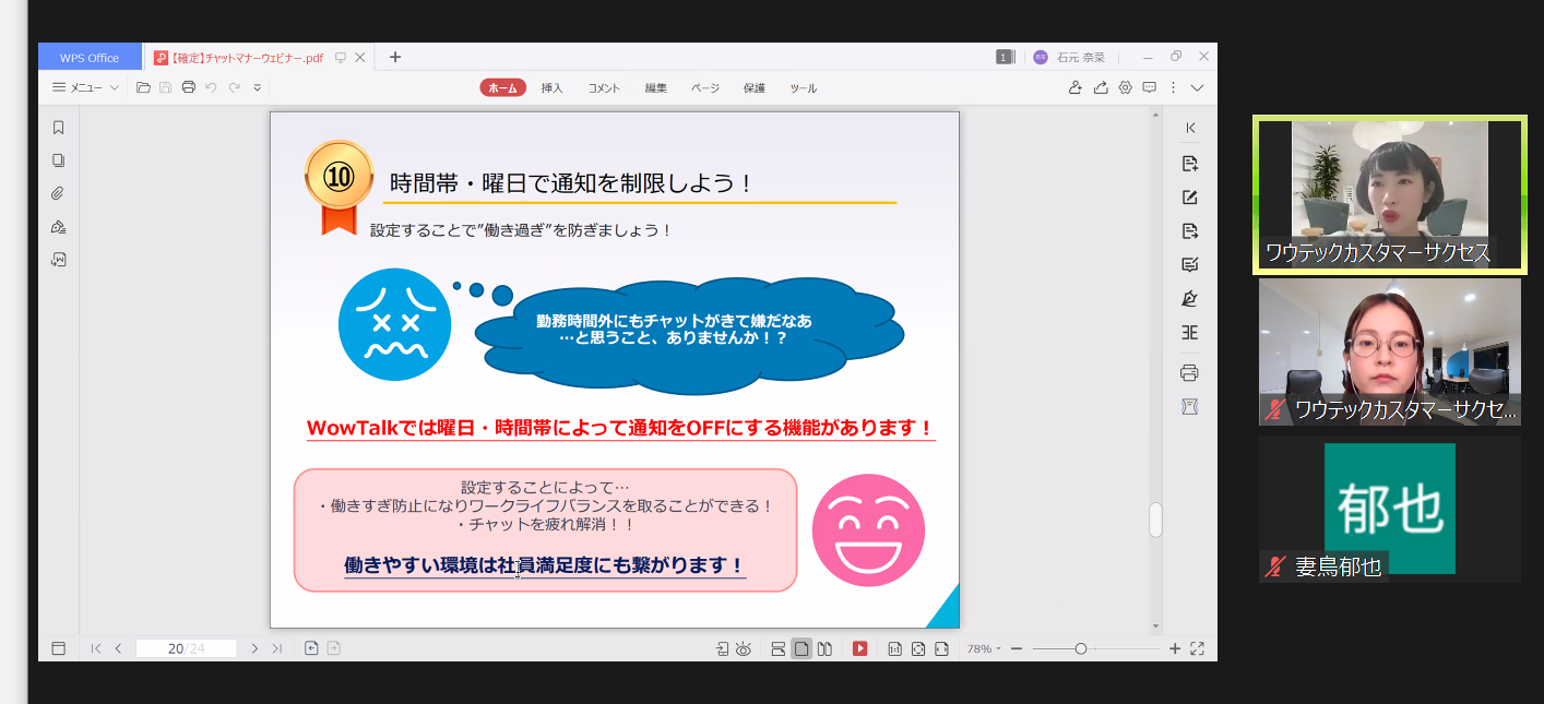 ウェビナーというかたちでビジネスチャットのマナーとモラルについてご紹介させていただきました。
