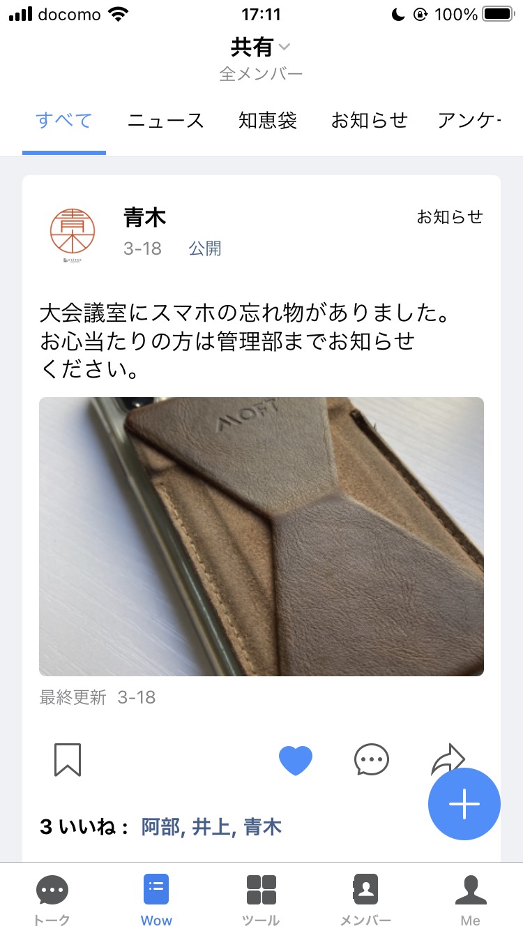 そしてWowTalkの掲示板ならいつどこにいても見られますので、