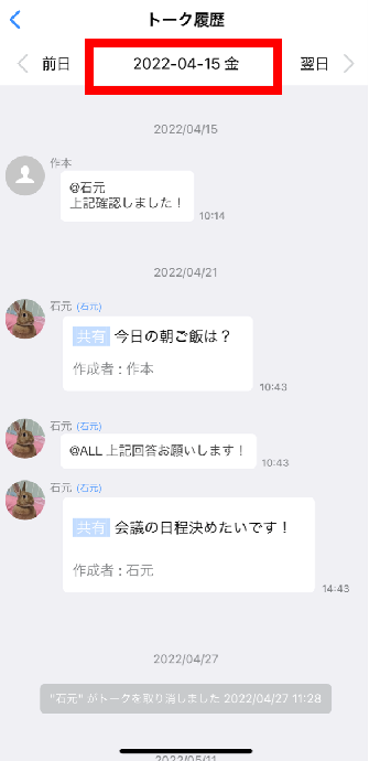 そんな時は検索よりも、「トーク履歴」の活用が便利です!