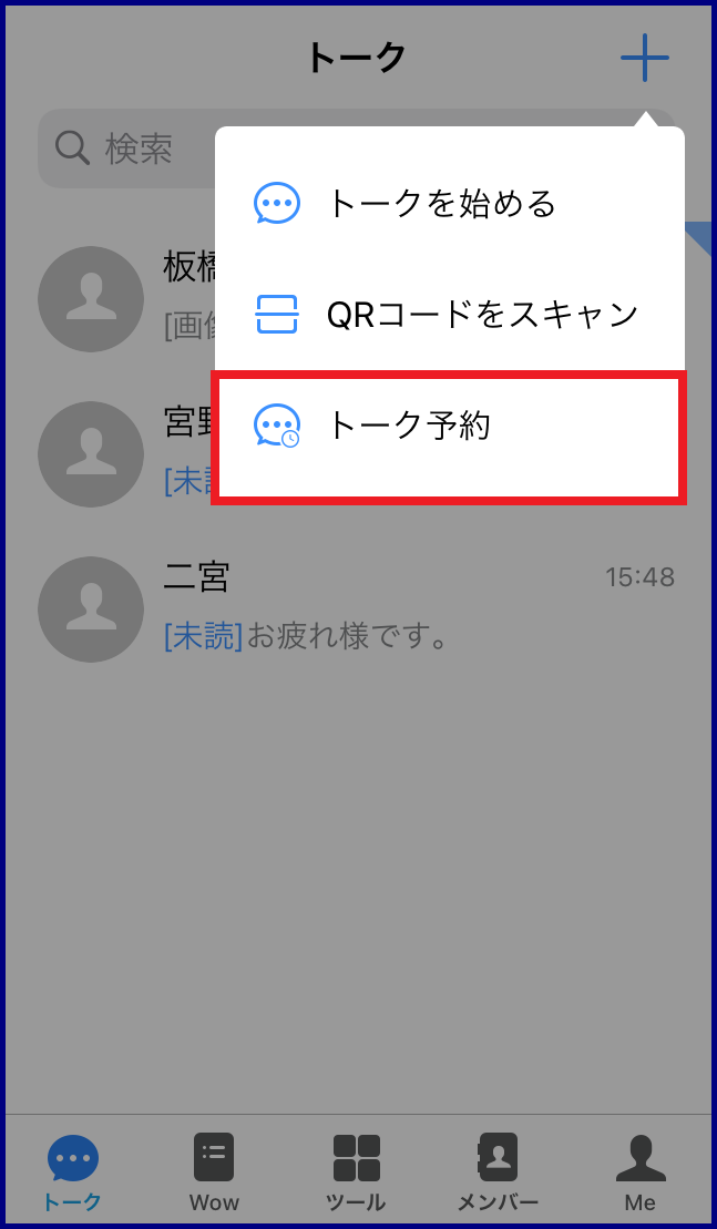 これで、勤務時間外や週末にトークを送ってしまい、相手に迷惑をかけてしまうことを予防できます。