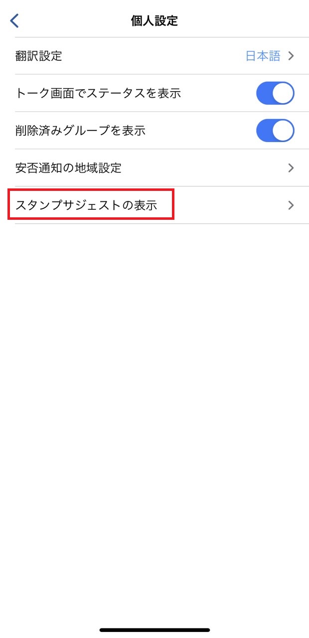 一番下にある「スタンプのサジェスト表示」をタップしましょう?♀️?