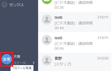 ① 左端のプロフィール画像にカーソルを合わせ「変更」をクリック