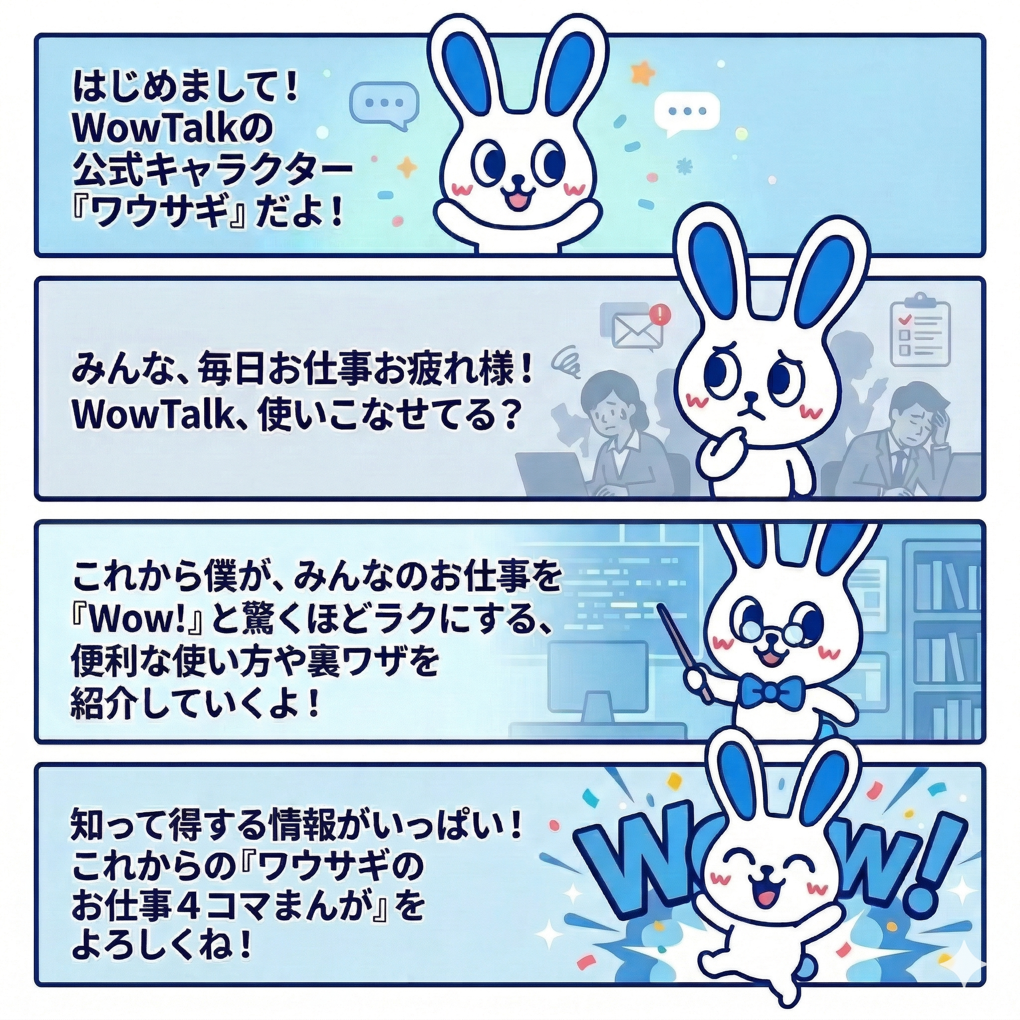 月に一度、ワウサギのお仕事4コマまんがをお届けすることになりました。
