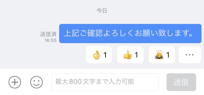 絵文字リアクションをトークに送信すると、下記の画像のような表示になります!