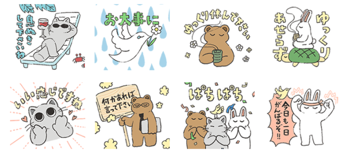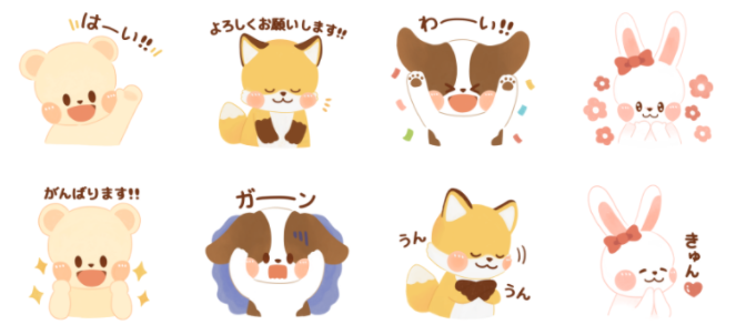 チャットでのコミュニケーションがより柔らかくなるような、ほっこりかわいい動物たちのスタンプです。