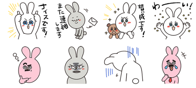 感情表現豊かなうさぎさんのスタンプ。キャラクターデザイン・メッセージ・表情など、性別や年代を問わずに『使いやすい』を盛り込みました。