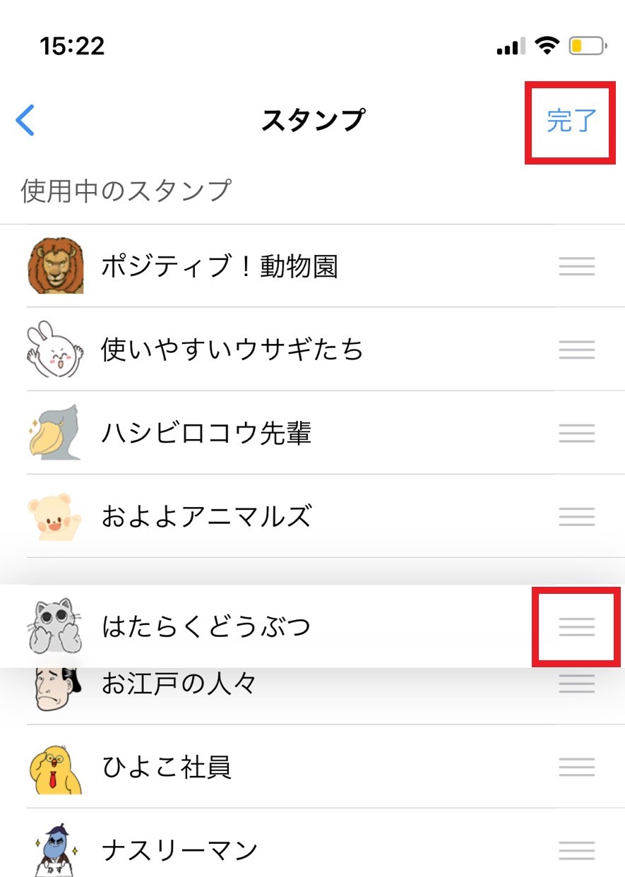 各スタンプ横の3本線を長押しするとスタンプを動かせるようになります!