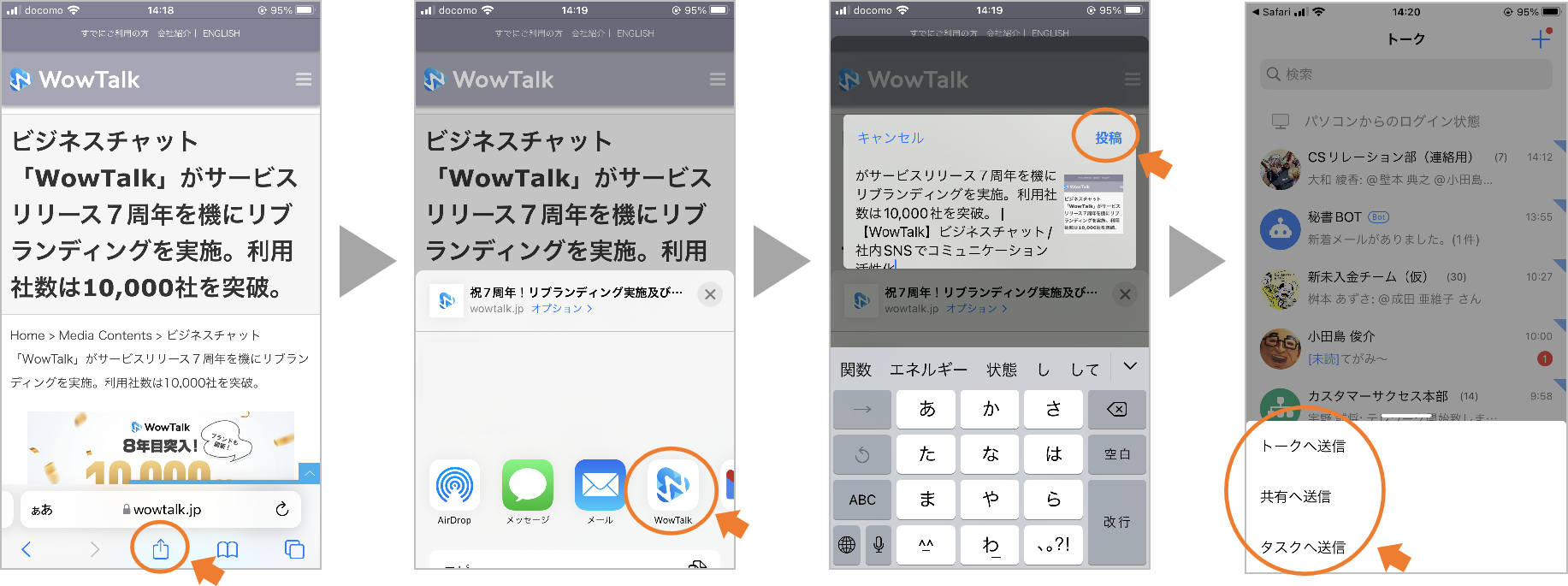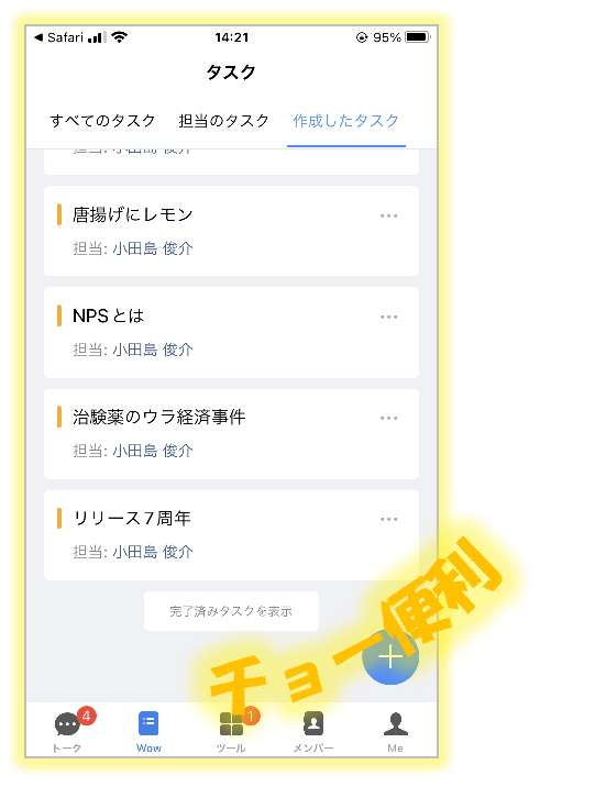 WowTalk内のどこに飛ばすか選べるんですが、私のオススメは「タスク」!